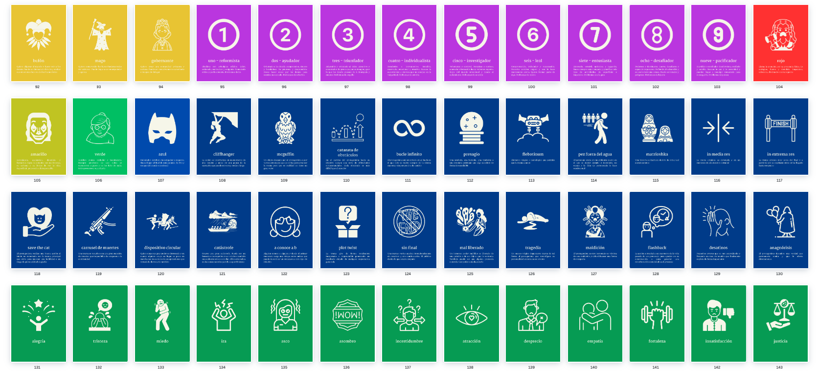 22 tarjetas naranjas de estructura que incluyen la clásica y el viaje del héroe